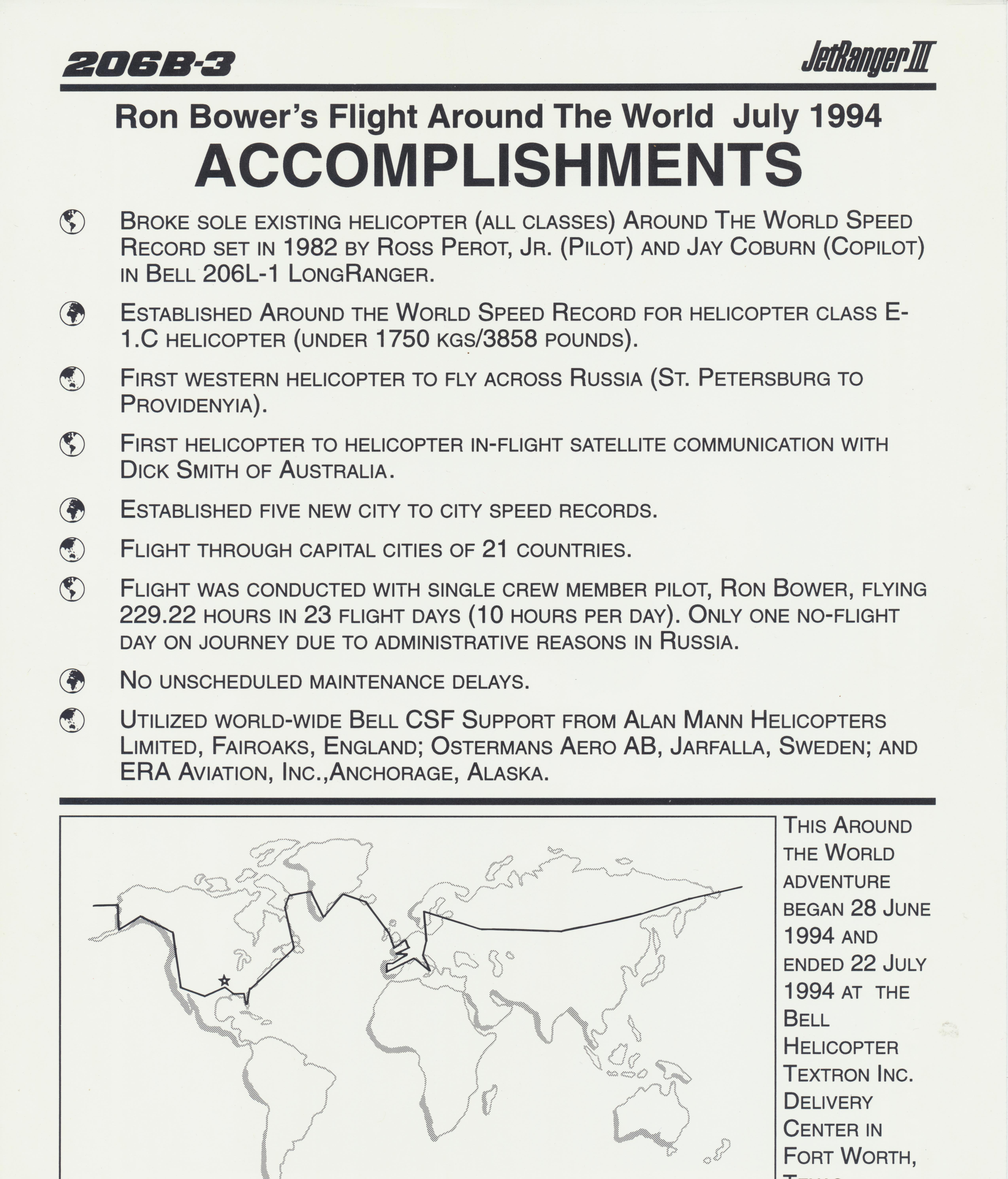 Ron Bower, biography of a record setting helicopter pilot, Bell Helicopter, around the world