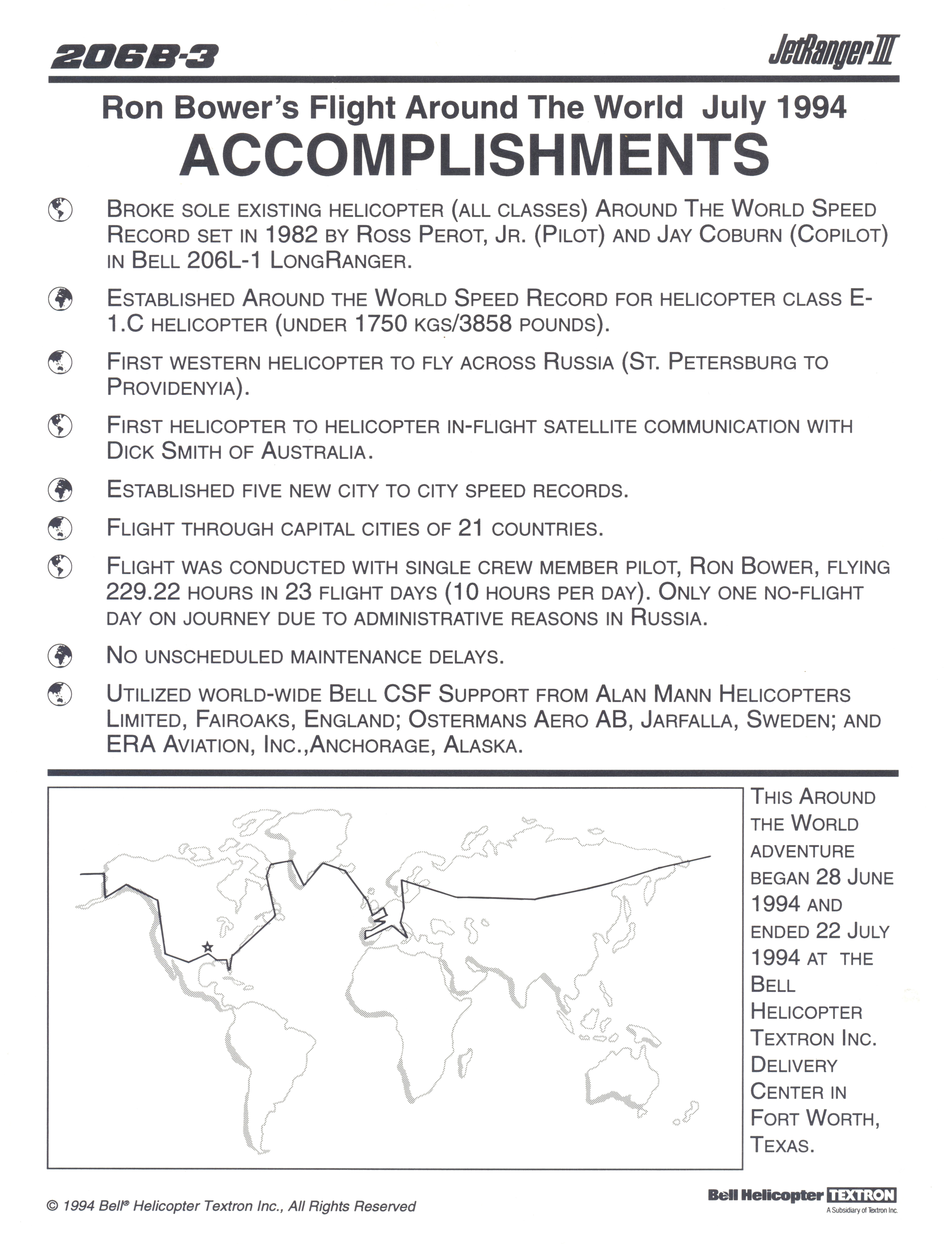 Ron Bower, biography of a record setting helicopter pilot, Bell Helicopter, around the world
