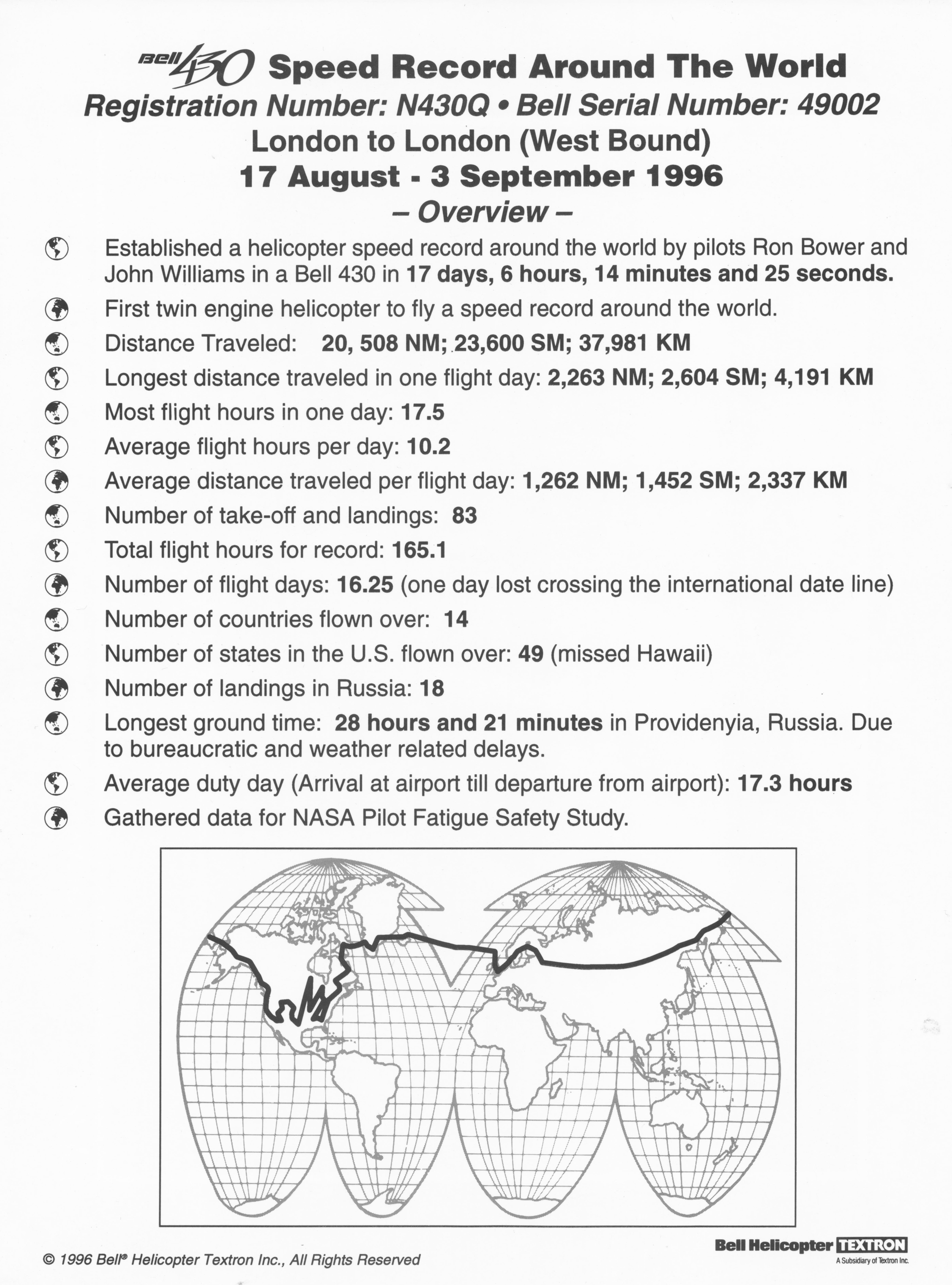 Ron Bower, biography of a record setting helicopter pilot, Bell Helicopter, around the world