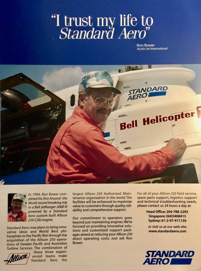 Ron Bower, biography of a record setting helicopter pilot, Bell Helicopter, around the world