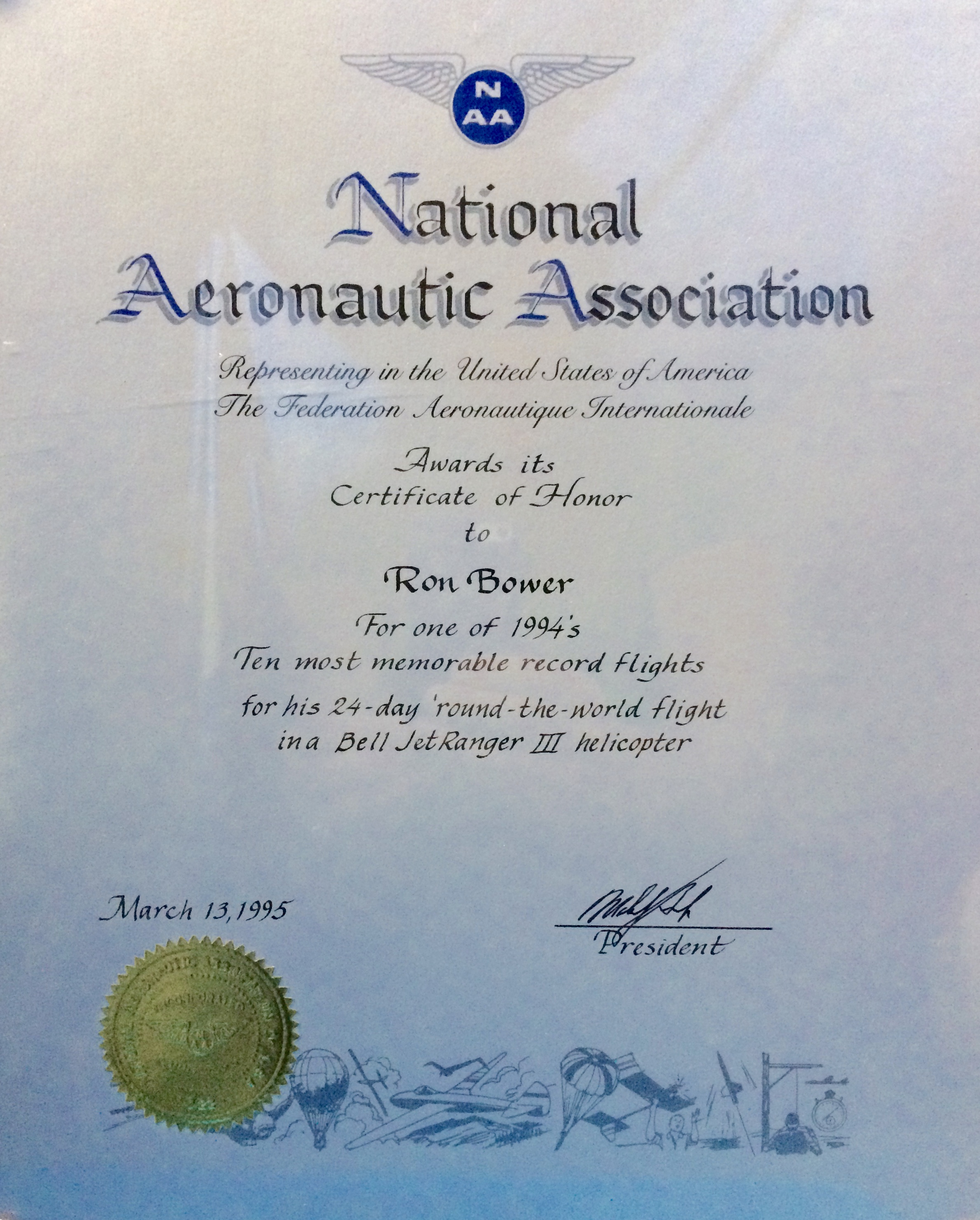 Ron Bower, biography of a record setting helicopter pilot, Bell Helicopter, around the world