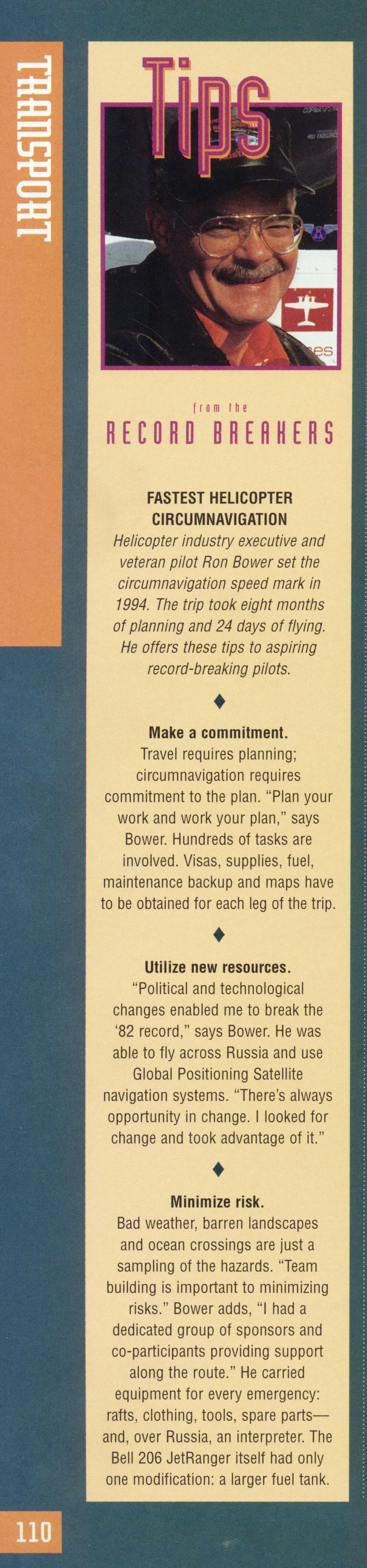 Ron Bower, biography of a record setting helicopter pilot, Bell Helicopter, around the world