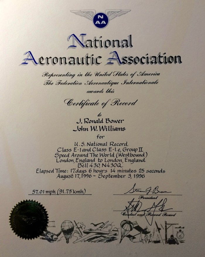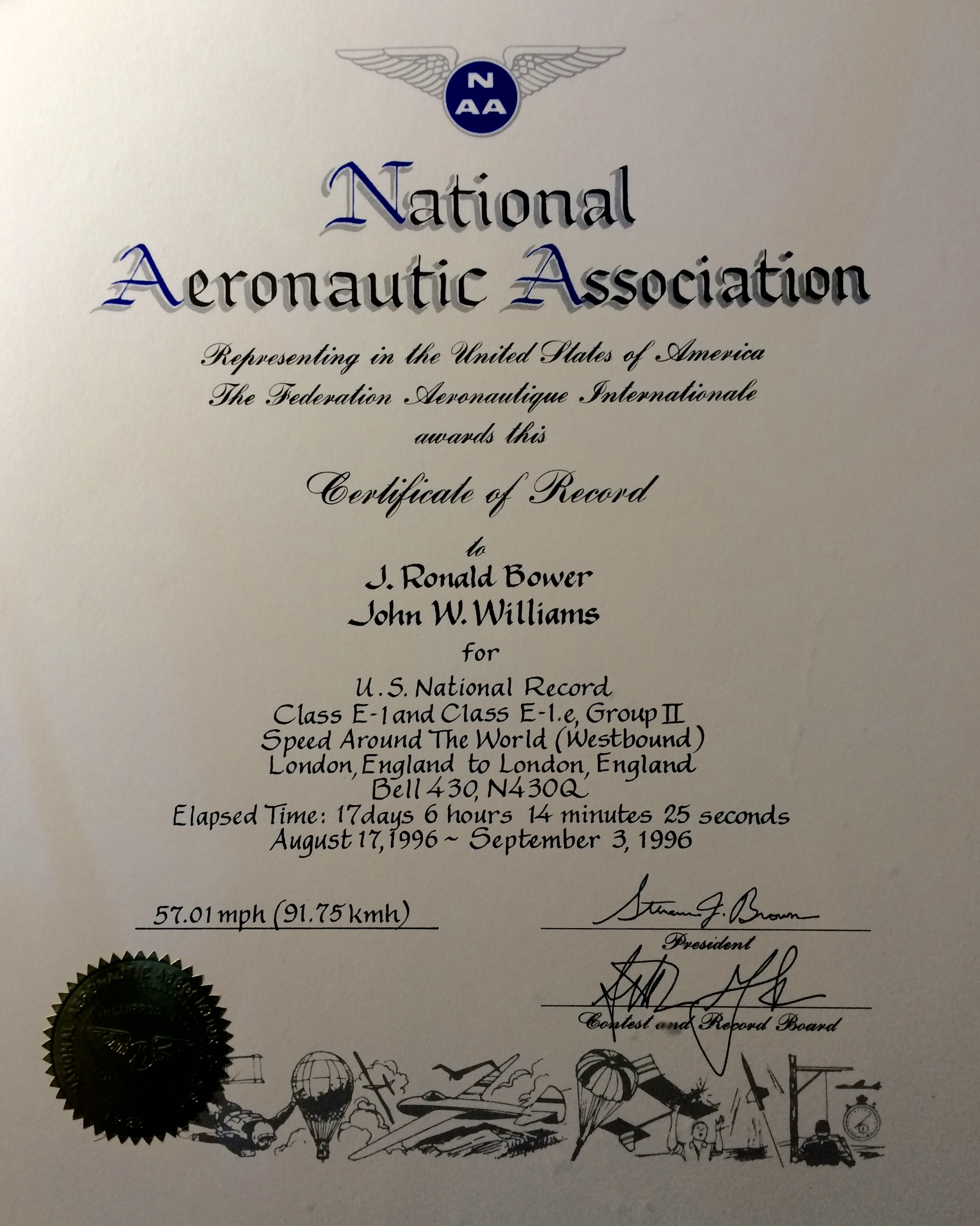 Ron Bower, biography of a record setting helicopter pilot, Bell Helicopter, around the world