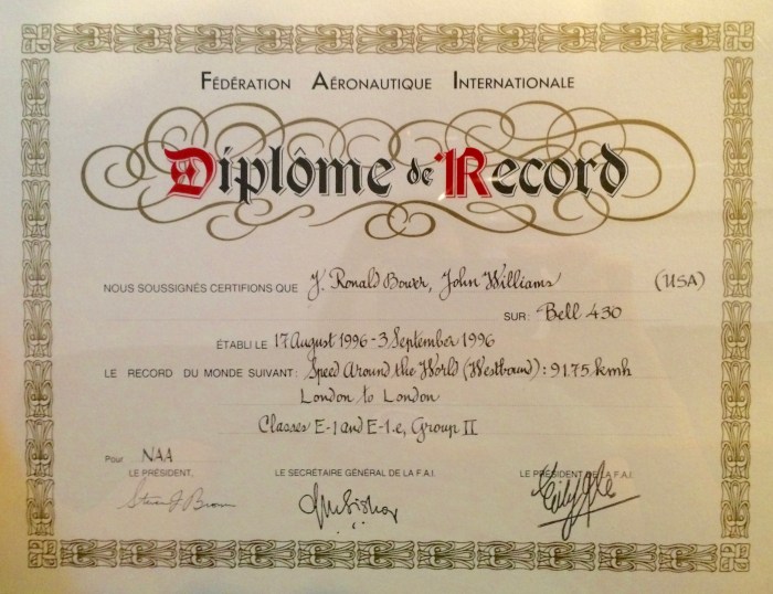 Ron Bower, biography of a record setting helicopter pilot, Bell Helicopter, around the world